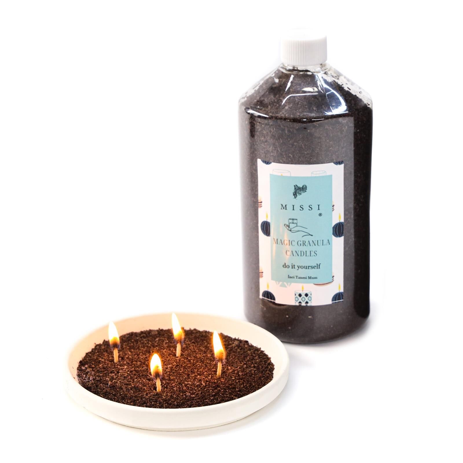 Yanıcı olmayan bir kap içerisine mum tozunu dökün ve fitili tozun içine sokun. Fitilin ucunu yakabilemek için dışarıda bırakın. Sonsuz tasarım özelliği ile ortamınızda her seferinde farklı atmosfer yaratabilirsiniz. Dilerseniz, diğer renk ve kokulu missi inci tozu mumlar ile karıştırıp, tasarımızlarınızı zenginleştirebilirsiniz.