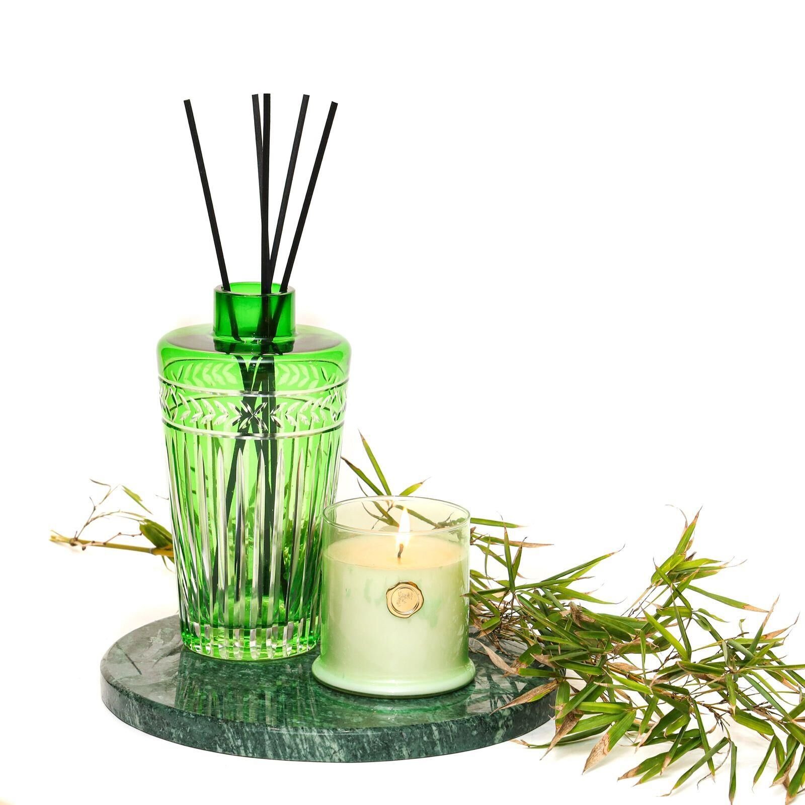 Yeşil Kristal Kesme Cam Şişe Oud Vanilya Oda Kokusu (23 cm)