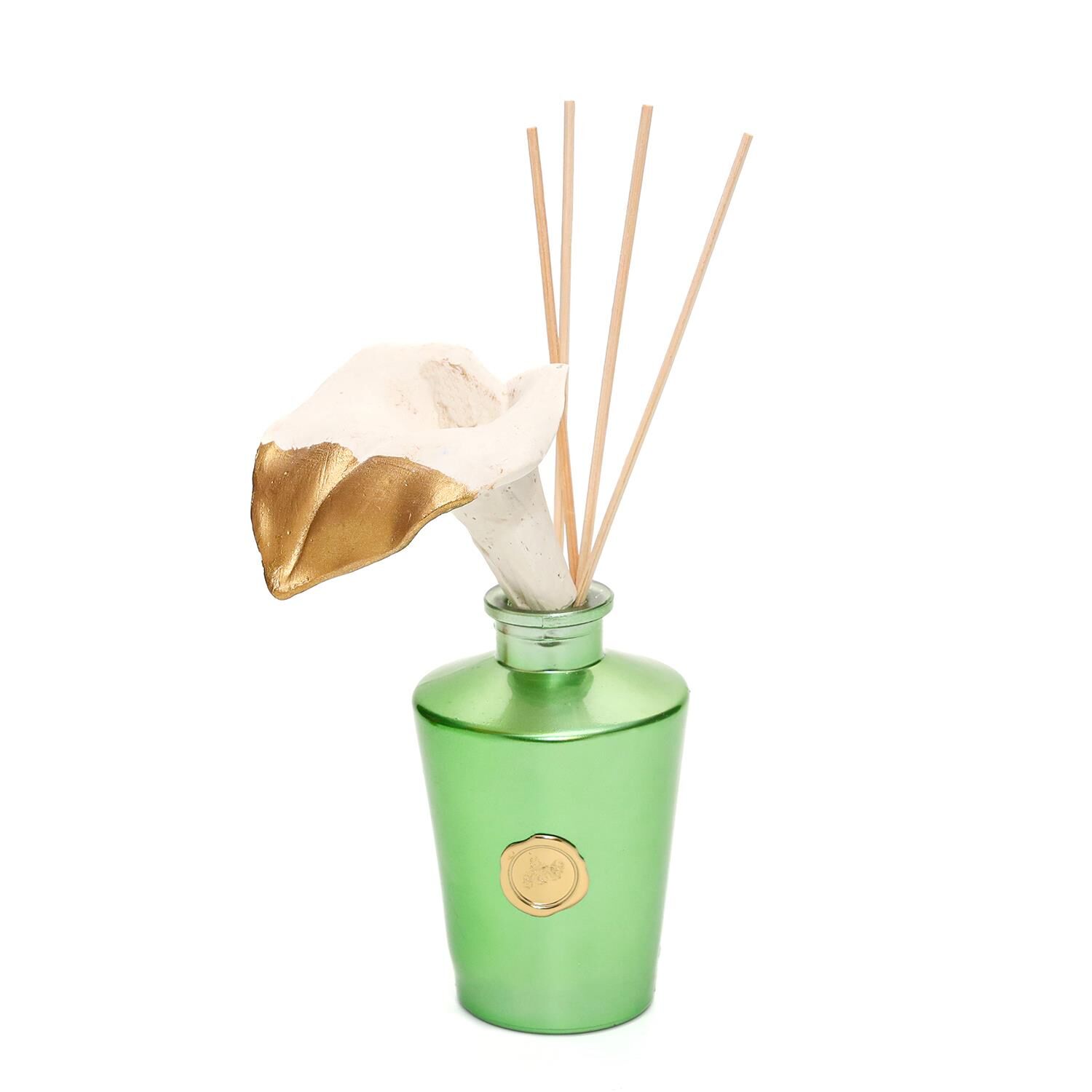 130 ml Yeşil Golden Glow Gala Çiçek Taş Çubuklu Oud Vanilya Oda Kokusu