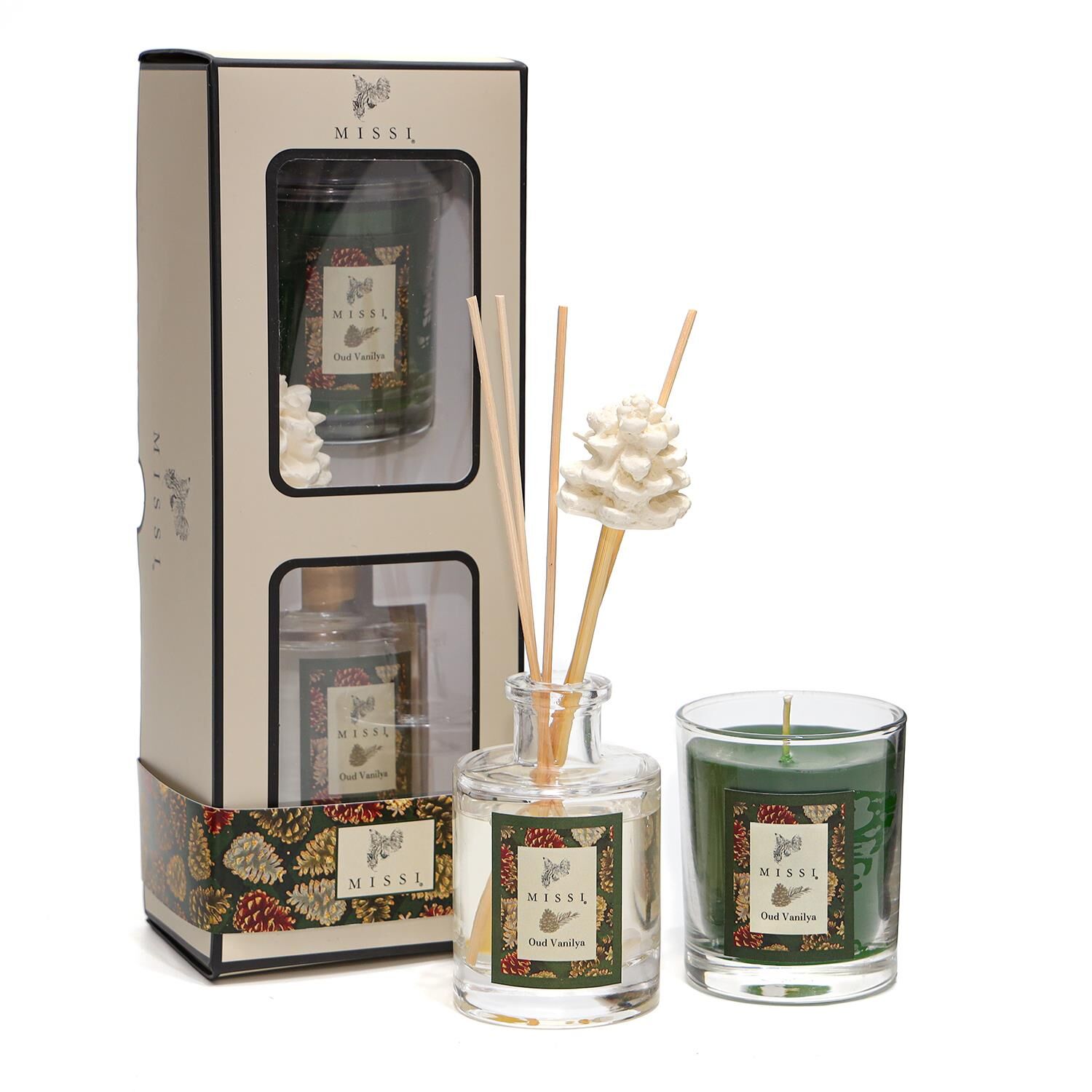 Yılbaşı Oud Vanilya Hediye Seti (Oda kokusu&Vegan Mum)